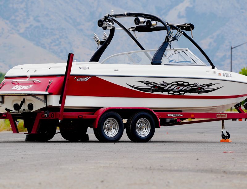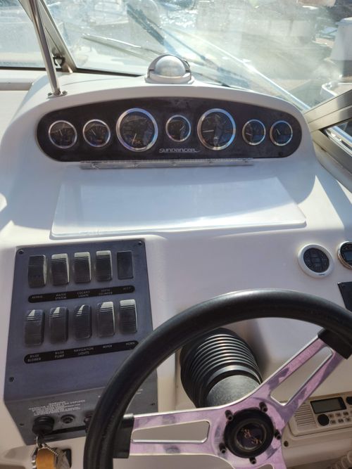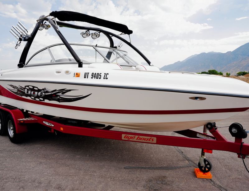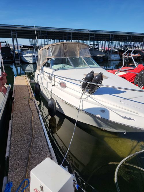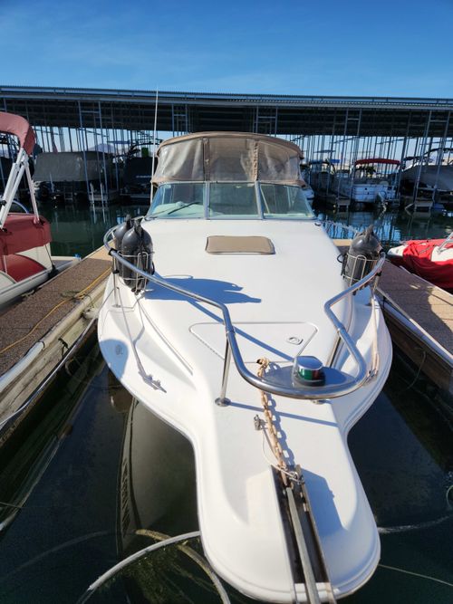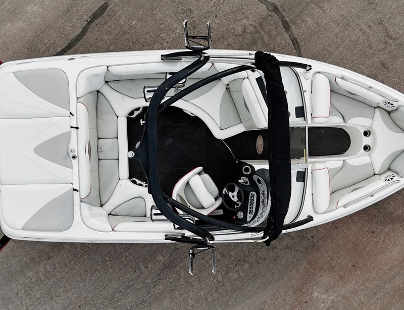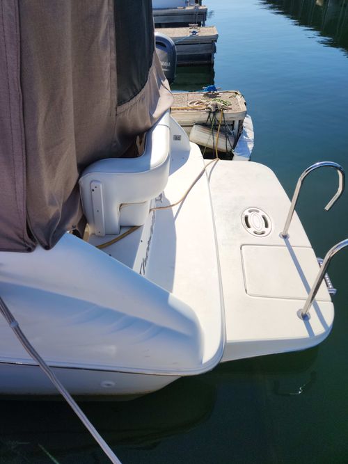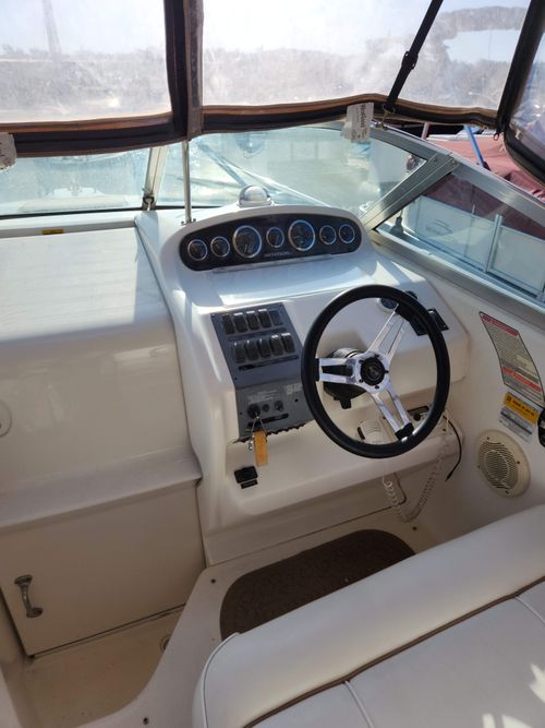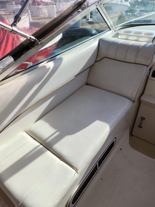 This is a boat is in excellent condition and it has a 7.4 300HP Mercruiser engine with a Bravo 3 drive. It comes with a full camper enclosure, VHF, GPS, Depth finder, bilge lights, dual battery with switch, mooring cover, VHF radio, green lights, swim platform w/ ladder, pressure water system. It comes with a portable Cruisair carry-on A/C. The boat was recently serviced and runs excellent. Also comes with a very nice tandem axle trailer.