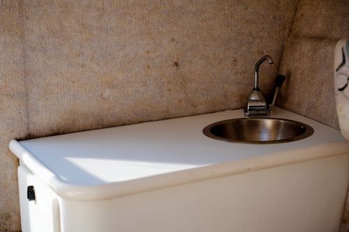 - Compact sink area and storage cubbies for your gear