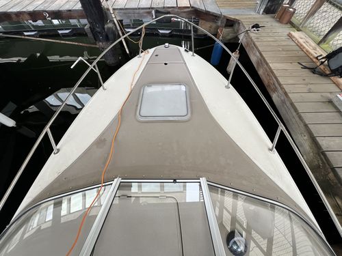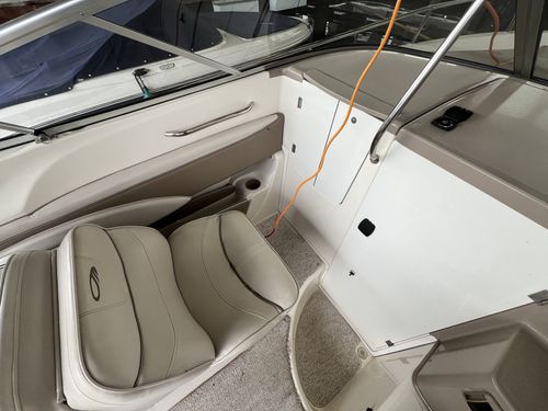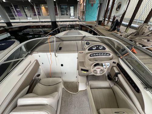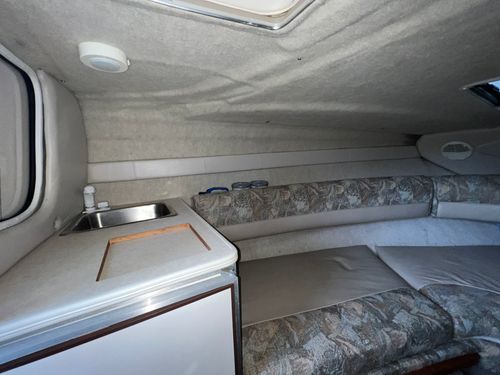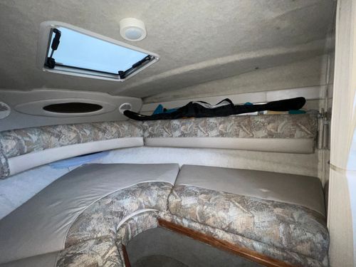 The Maxum 2300 SC is the flagship of the Maxum Sport Boat fleet. It delivers the ease of a runabout, and the comfort and luxury of a cruiser. From the spacious and amenity- loaded cabin to the wood grain dash with tilt steering, attention to comfort and aesthetics is reflected in every detail. The spacious cabin on the 2300 SC offers comfortable overnighting with a generous V-berth and plentiful amenities.