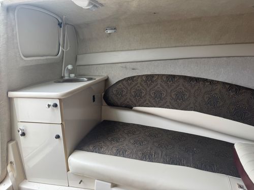 The 2000 Maxum 23000sc reveals its unique sophistication with a streamlined fiberglass hull that does not only guarantee durability but also promotes ease in navigation. Its deep-V hull enhances its sea-keeping ability, ensuring smoother rides in high waves. Offering spacious compartments, the boat hosts a single-detachable cabin that delivers cozy accommodation, incorporating a tidy galley, comfortable sleeping quarters, and a modern bathroom to provide convenience at sea.