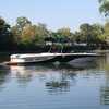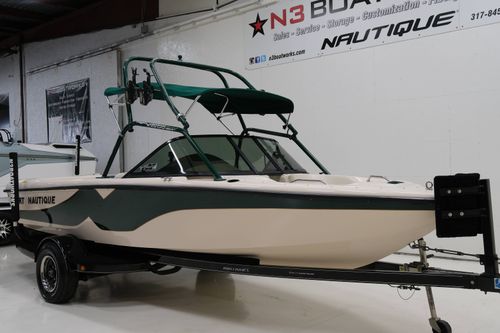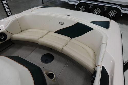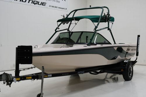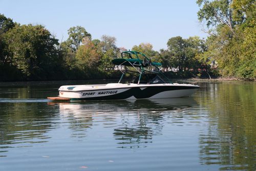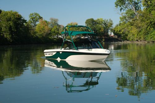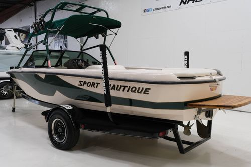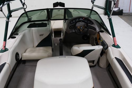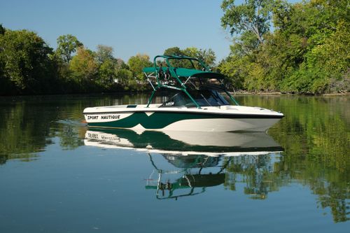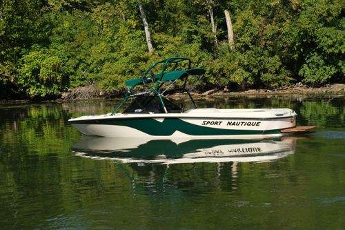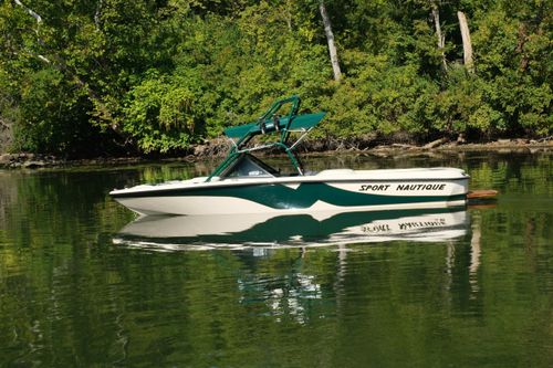 This 2001 Sport Nautique is an amazing example sitting in Hunter Green, and we're excited to offer it for sale. Upon arrival at our shop it got the full service mechanical treatment including fresh fluids, filters, impeller, steering cable, drive belts, tune-up kit, and new manifold seals. The dash gauges were replaced by the previous owner and original hours are now unknown. The boat passed a compression test and the dash reads 281 hours. Our detailing technicians removed the original graphics, polished the full exterior, and replaced with new graphics and gold pin striping. The trailer received new steps, bunks, and carpet all around. Lastly, the rear and loveseat bases have been replaced with matching vinyl. Overall, the boat looks amazing and is ready to hit the water. For a closer look at the overall condition, please watch our walk-through video.