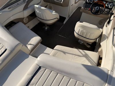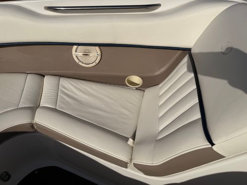 Finished in a beautiful white and navy exterior, this Cobalt looks every bit as elegant as it performs. The deep-V hull ensures a soft, confident ride even in choppy water, while Cobalt’s renowned build quality gives you that solid, quiet feel that owners love.