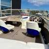 The boat's innovative design showcases a superior-quality Bimini top. This top enhances your boating pleasure by providing much-needed shade during those warm sunny days, ensuring you can enjoy your time on the water while staying cool and comfortable.