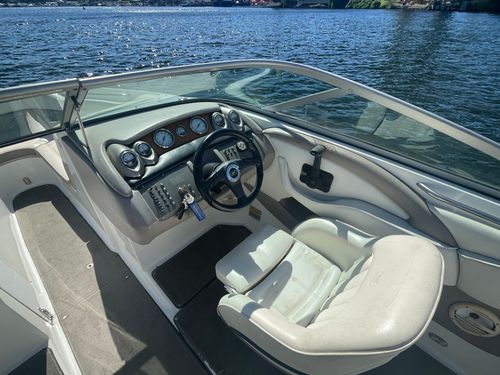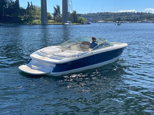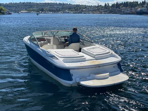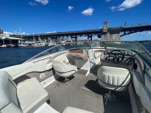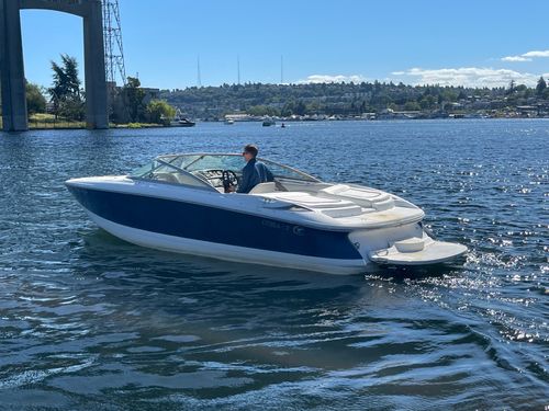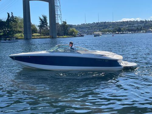Was: $19,900 Now: $14,900! 2003 22' Cobalt 220 Open bow, classic navy powered by a Volvo 5.7GXi with 1,061 hours. Options include: Rosewood dash, Dual battery with switch, Mooring Cover, Docking lights, and much more! Purchase includes a brand new trailer! Or, purchase the boat only (no trailer) for $6,900!