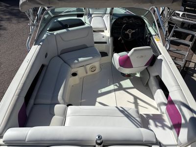 The refined V-bottom hull design provides precision handling and a smooth ride. As always, there's plenty of storage space. Designed with the wakeboarder in mind, the walk-through transom allows for easy access to the swim platform area while leaving a large stern sundeck for complete solar recharging between rides. American Wakeboard Association (AWA) approved, the Avalanche provides competition-quality wakeboarding performance.