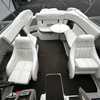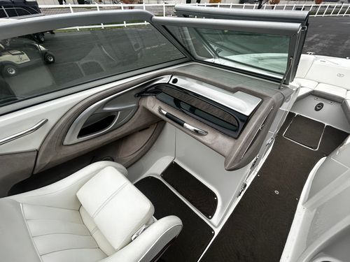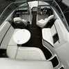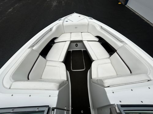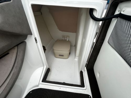 large head with pumpable toilet. Snap in carpet, side mounted cockpit table, easy walk through, large rear sun pad, large swim deck, customizable bow cushion set up, auto fire suppression and more!
