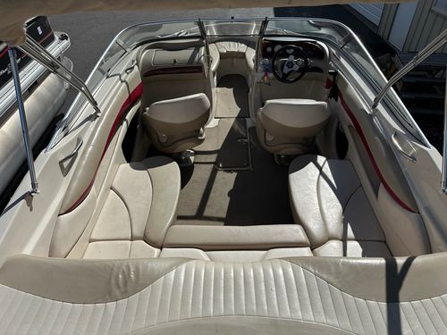 Additional Features: Other outstanding features include a CD sound system complemented with water-resistant speakers, bow lounges with storage underneath, drink holders, and a built-in cooler to enhance your boating experience.