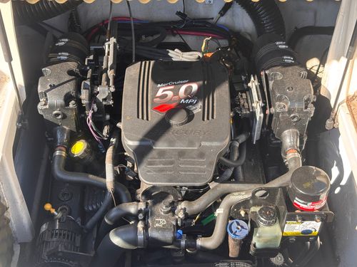 Powerful 5.0 Mercruiser: With its reliable 5.0 Mercruiser propulsion system, the boat guarantees a smooth, powerful, and efficient performance, providing optimal control and speed on the water.