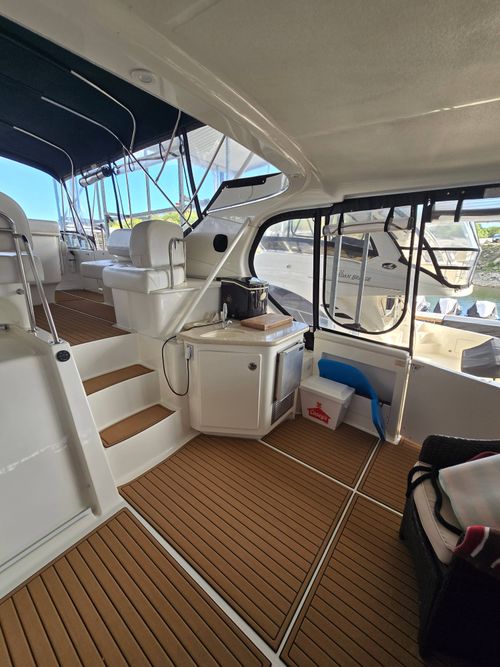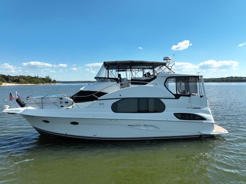Docked at Lake Texoma, the 2005 Silverton 43 Motor Yacht provides an opportunity for you to explore the lake's stunning vistas or charter it as a luxurious retreat. With its first-rate amenities and robust performance, you are guaranteed a brilliant boating experience.