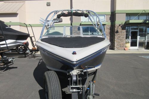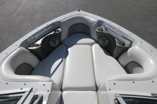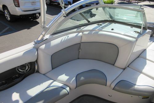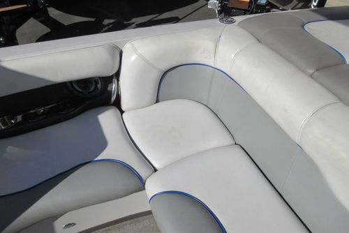 The 2005 Supra Launch 21V delivers big performance in a trailer-friendly package. At 21 feet, this V-drive wake boat combines a powerful 325 HP Indmar engine, ballast system, and wake plate with a comfortable layout that seats up to 13 passengers.