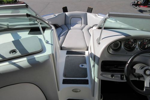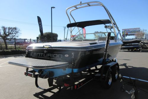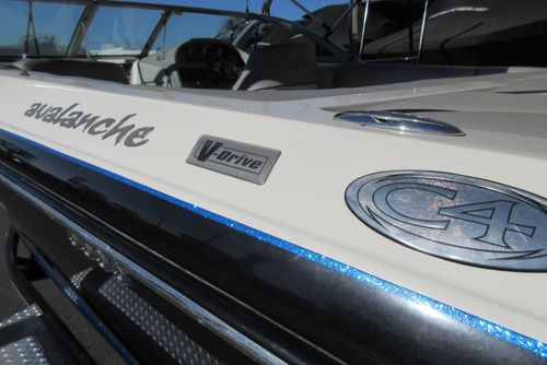 The 2007 Centurion Avalanche C4 is a 22-foot V-drive wakeboard/wakesurf boat known for its deep-V hull, offering a comfortable ride in rough water, roomy interior with open bow, and solid wake performance for watersports. Key features on this boat included the upgraded Black Scorpion Mercruiser Motor, standard ballast, and adjustable trim plates for fine-tuning wakes, making it a capable all-around family and sport boat.