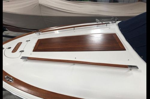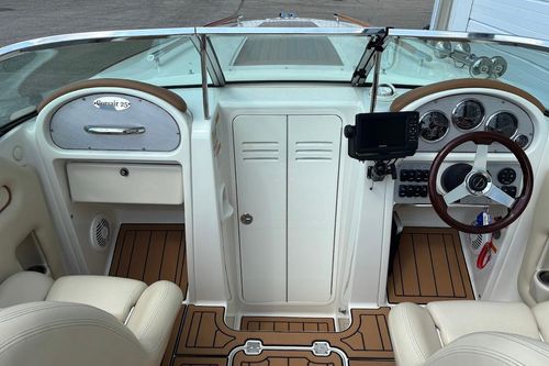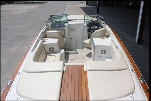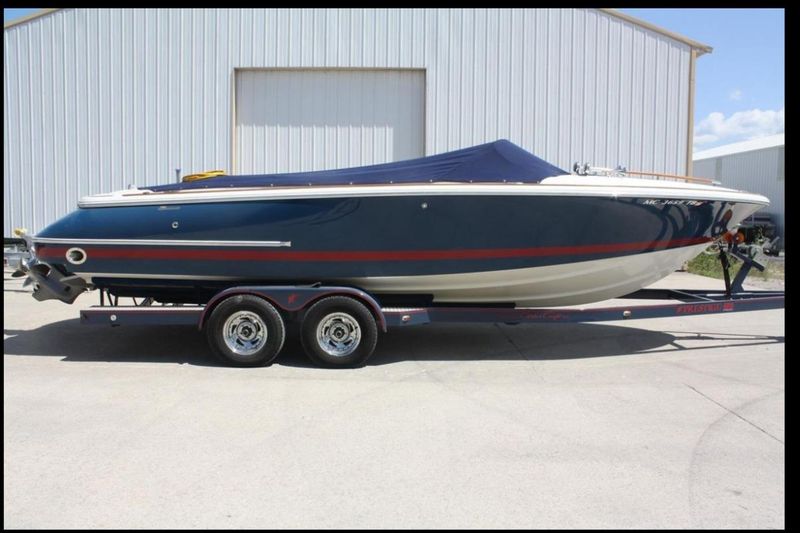 This 2007 Chris Craft 25 Corsair perfectly balances beauty, comfort and performance. The long, low, covered fore deck enhances the driver’s vision, while providing a spacious, bright berth tucked below. Within its deceptively trim shape, the Corsair easily accommodates 10 people for day trips or a couple for a weekend adventure. And with exhilarating horsepower, it arrives in sophisticated style – quickly.The Corsair 25 brings back the designs of the past. From the wide bow to the tumblehome aft, if you replaced the wood with fiberglass, it seems you have the hull design for today. Fresh water only, always winter stored indoors. Only 550 hours on her Volvo 8.1L with Duo-prop drive.