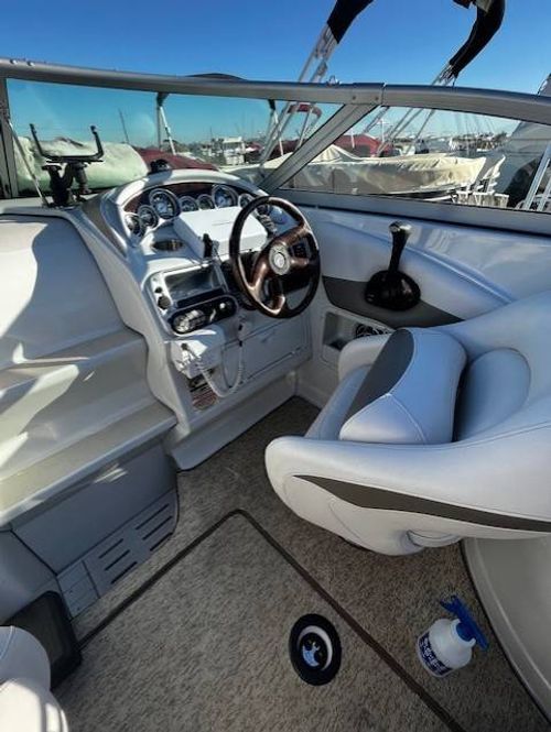 This well-maintained 27-foot Crownline 255CCR cabin cruiser offers excellent condition both inside and out. Powered by a Mercruiser 350 Bravo 111 engine, this boat delivers reliable performance and smooth handling. The hull is in great shape with a fresh gel coat, ensuring a clean and attractive appearance.