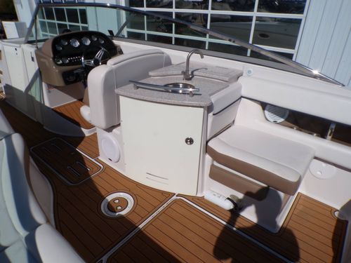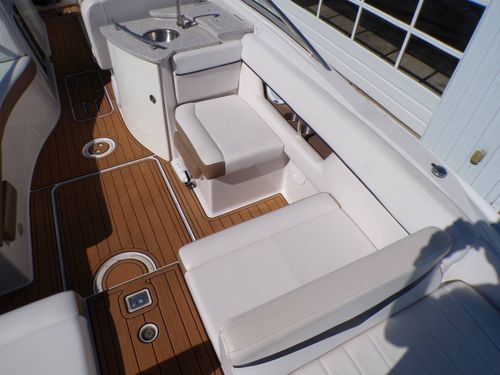 The 2007 Four Winns H310 boasts a commodious layout with deep, comfortable seating and a spacious swim platform. It has practical features that make outings comfortable - a wet bar for entertainment, a private head, and plenty of storage space. The generous sun pad is perfect for lounging and soaking up the sun, contributing to a relaxed boating experience.