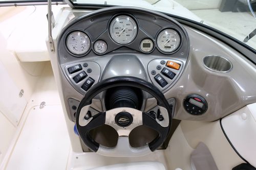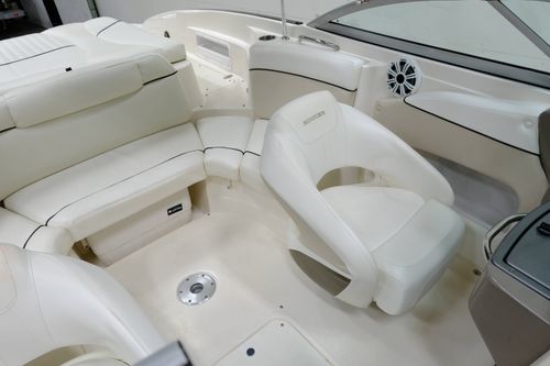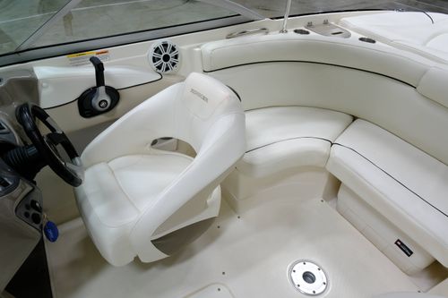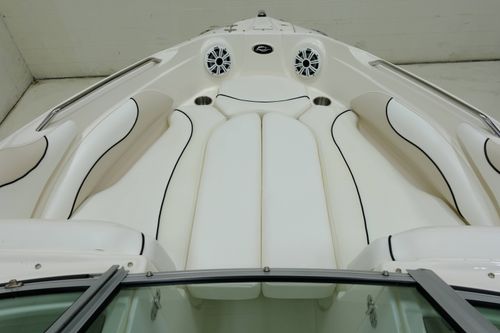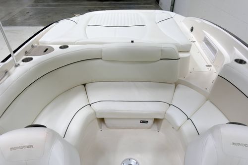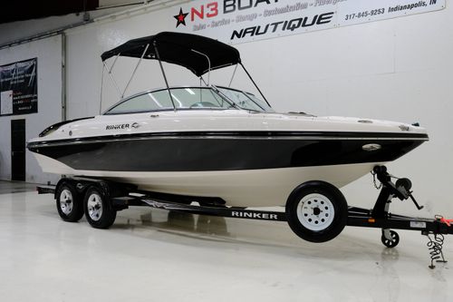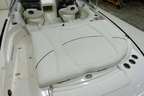 This 2007 Rinker Capitva 226 is a recent trade in an in awesome condition with 712 hours on the Mercruiser 5.0L engine. Upon arrival it received a full service including fresh fluids, filters, impeller, & full tune up. Our detailing team completed a full exterior restoration by removing the original graphics, wet sanding, and polishing the gel coat. It brought the original luster back to the black gel coat leaving an awesome finish. There are signs of the original registration letters faded into the white gel on the boat. Otherwise, the exterior looks amazing. We also replaced the vinyl on the sun pad and serviced the trailer bearings. Overall, the boat is in great condition and you can get a closer look by watching our walk-through video.