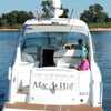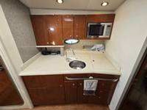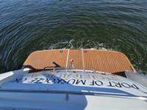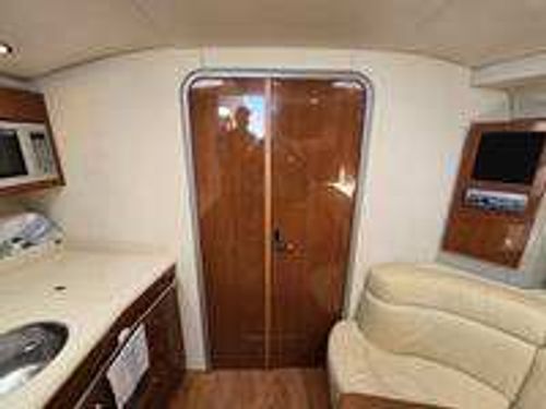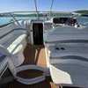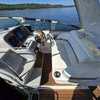 Step inside the boat, and you'll find a spacious, air-conditioned interior, well-appointed with luxury fixtures and plush upholstery. It features a spacious user-friendly galley, a large convertible salon area, and a master stateroom with a queen berth. Additional accommodations are available in the form of a convertible Ultraleather sofa.