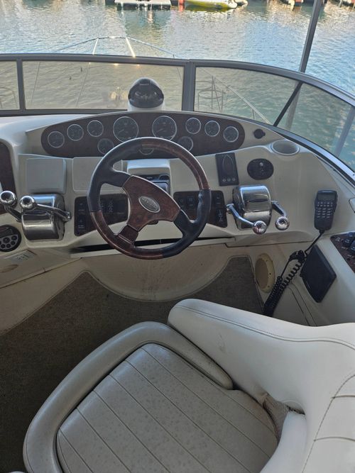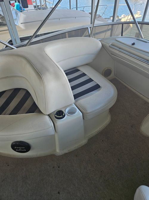 The flybridge is another highlight of the Meridian 368, providing a panoramic view and an ideal spot for both the captain and guests. The ergonomic helm station offers intuitive controls, making navigation a breeze. Additionally, the boat includes plush seating areas that are perfect for lounging, enhancing the overall experience of luxury living on the water.