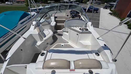 The 2008 Sea Ray Sundancer 240 is a perfect blend of comfort, performance, and quality craftsmanship, making it an ideal choice for weekend getaways or day cruising. Powered by a dependable MerCruiser 5.0L MPI engine with Bravo III drive, this sporty cruiser delivers smooth, confident handling and efficient performance on the water.