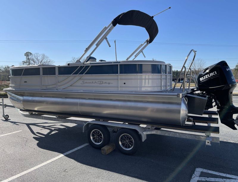 2008 South Bay 722 – This 22′ pontoon is powered by a 2006 Mercury 90hp 4-stroke EFI, providing smooth, efficient performance for fishing or cruising days on the lake. Equipped with a bimini top for shade, a stereo for onboard entertainment, and twin rear fishing chairs, this setup is perfect for anglers who also want space to relax. The boat’s layout offers plenty of open deck space for casting or socializing, with classic South Bay comfort and simplicity throughout. Clean, functional, and ready to launch, this 722 is an affordable way to enjoy time on the water. Call or visit us today to make it yours!