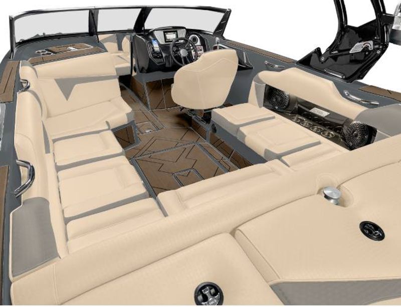 With lavish upholstery, generous seating capacity, and a well-appointed cockpit complete with state of the art control technology, the Supreme V208 ensures your on-the-water adventures are in supreme style and comfort. It's equipped with an aerial wakeboarding tower, a popular addition to increase the performance and appearance of the boat.