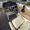 Luxury & Style: Stunning wood dash/trim package, black leather & stainless steel steering wheel, and a navy bimini top with matching bow tonneau cover.