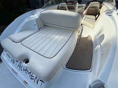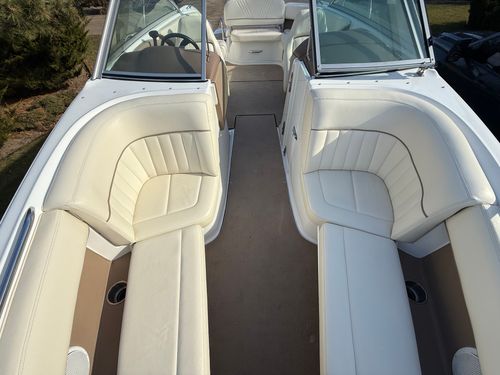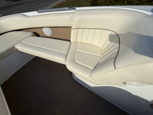 Convenience & Comfort: Aft walk-thru carpet & gate for easy access, bow cushion inserts for extra lounging space, and a cockpit dinette table for on-the-water dining.