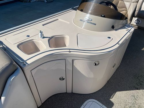 Spectacular 2009 Crest Savannah 25-footer Tritoon: A superb boat that has been kept in excellent condition. It boasts a robust Yamaha 150 motor with just 597 hours, ensuring optimal performance and durability.