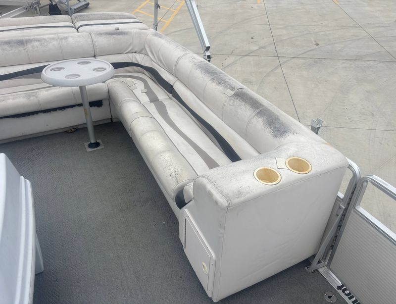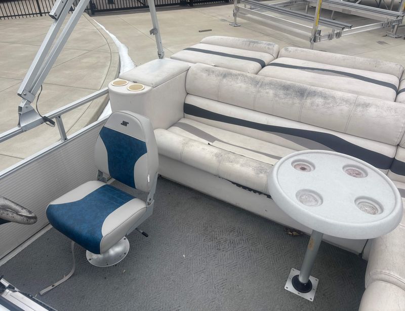 Dual Front Captain's Chairs: For maximum comfort and control, this boat is equipped with dual front captain's chairs. Enjoy your voyage as you command the vessel in absolute comfort.