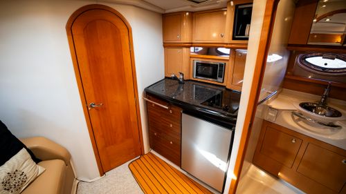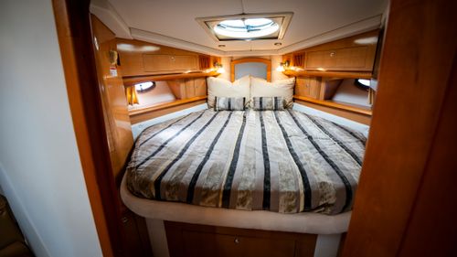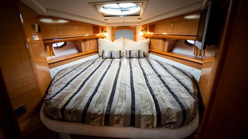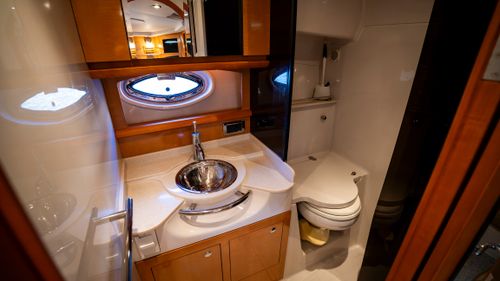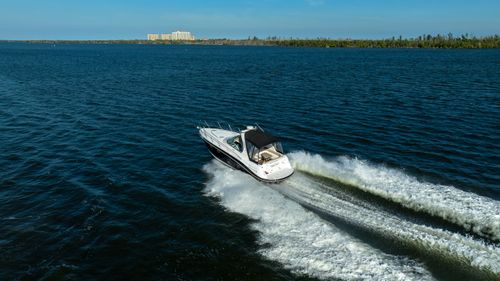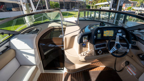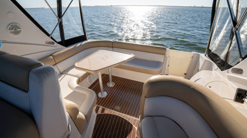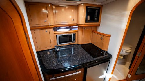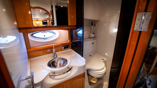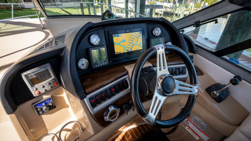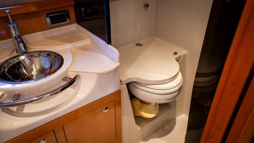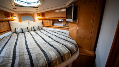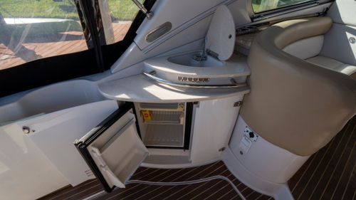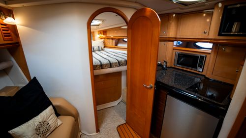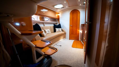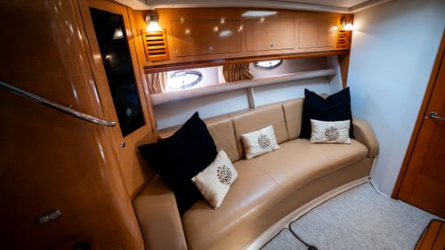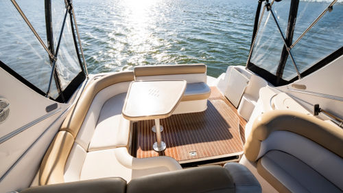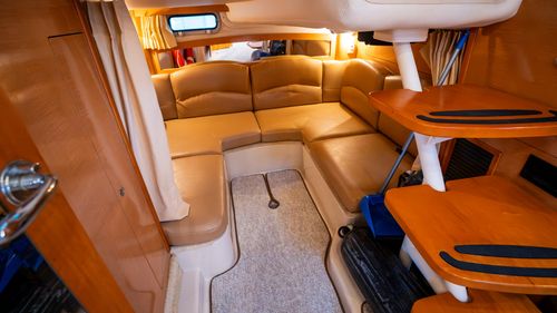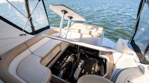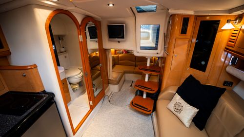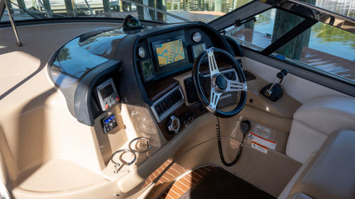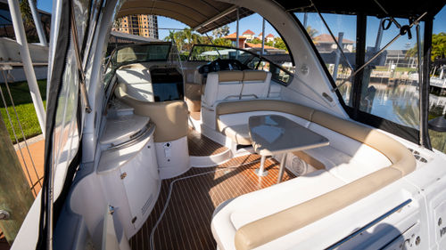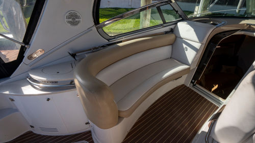 This Four Winns 358 is lift kept under a canopy. The cabin is meticulously kept and smells new. This is a great opportunity to own a 358 Four Winns that has been well cared for and lightly used!