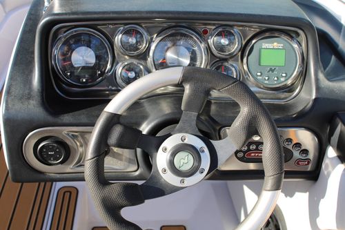 The 2009 Nautique 210 comes equipped with deluxe gear including, Zero Off GPS Speed Control, a 5-piece windshield, a docking light, and a premium sound system. For your watersport needs, it features a Flight Control Tower with board racks, alongside ample storage options to keep your space free and organized.