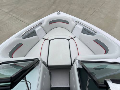 The multi-functional tower is a key highlight, accommodating tower speakers for entertainment, swivel board racks for equipment storage, and a pop-up pylon for watersports. For extra lounging flexibility, we have also included a bow filler cushion, transforming the boat's bow into a spacious sun pad.