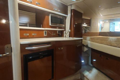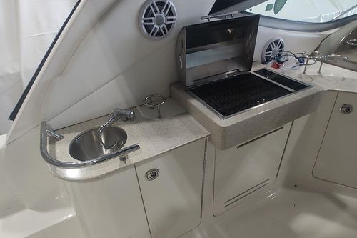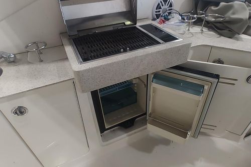 - Extra-large cockpit wet bar with solid-surface countertop can also accommodate optional built-in grill and refrigerator.