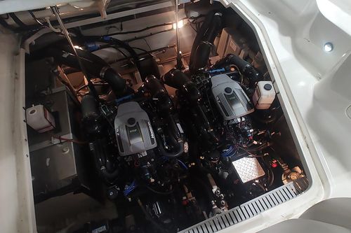 Key Features- Standard twin MerCruiser 350 MAG ECT Bravo III sterndrives with Digital Throttle and Shift