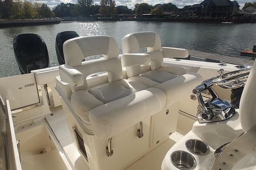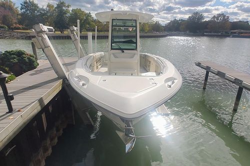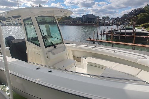 New listing , always freshwater and hoist kept since new ..She is running with a pair of 250 Mercury 4-stroke Verados with less than 470 hours , No bottom paint..