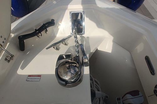 - 8" stainless steel cleats; bow (2), spring line with hawse pipes (2), stern with hawse pipes (2), anchor locker (1)