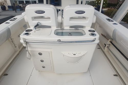 - Drink holders (4 in bow, 4 in hawse pipes, 2 in leaning post, 2 in console)