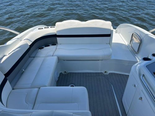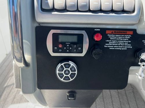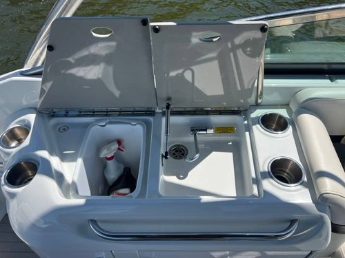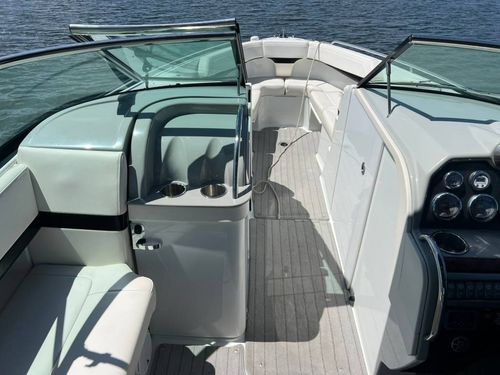 The spacious cockpit offers comfortable seating with high-grade upholstery for up to ten guests. The expansive swim platform and the integrated entertainment area come complete with a wet-bar, making it an excellent choice for entertaining on the water.