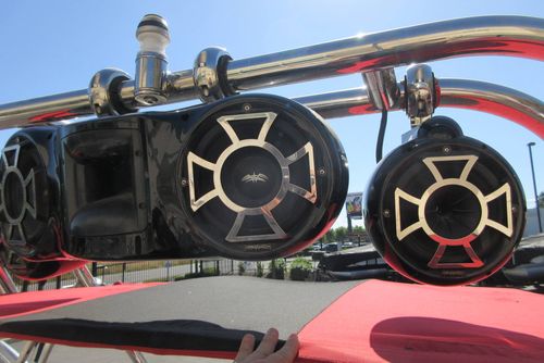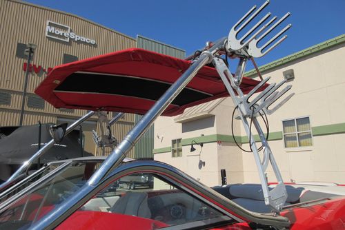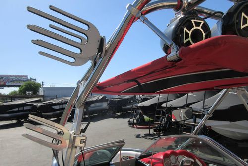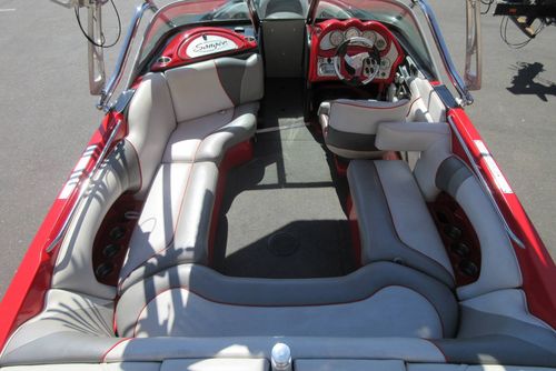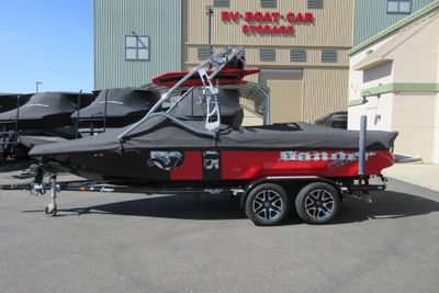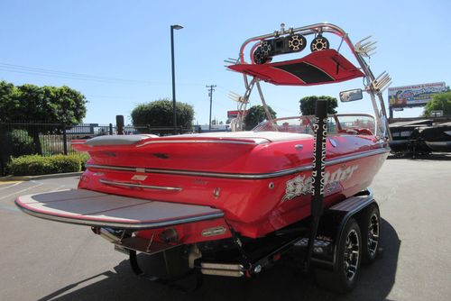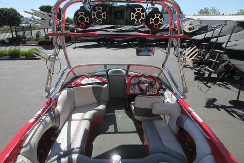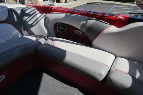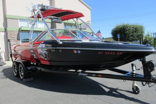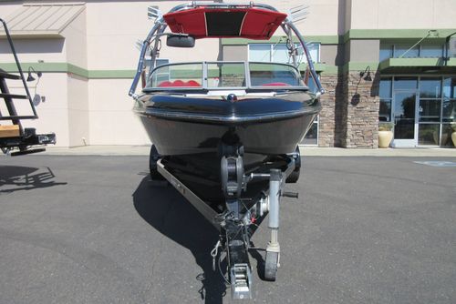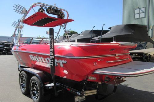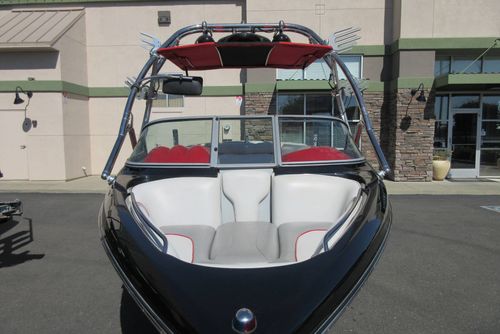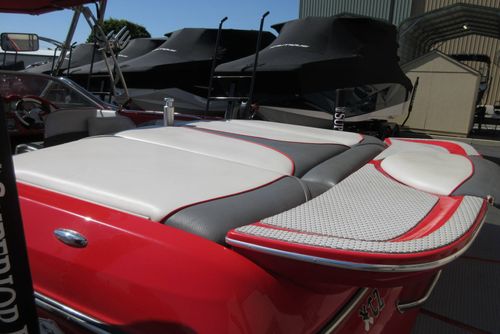 Based in Fresno, Calif., this boat brand has been around for 60 years with its line of quality ski boats. This crossover model V215, is the smallest but perhaps the most versatile model in its three-boat lineup. With 1,000 pounds of standard ballast split 50/50 fore and aft, the boat gives wakeboarders a large, crisp wake for low-orbit space travel. Because the rear ballast is split into two tanks, surfing is doable, especially if you adjust the up-to-12 passenger load around in the cockpit's U-lounge seating. But dump the ballast and adjust the speed to around 30, and the wake shrinks and softens enough to give slalom skiers a flat enough field of play for some serious slashing.