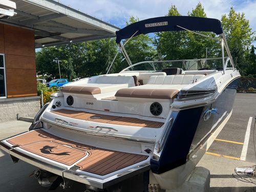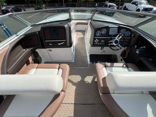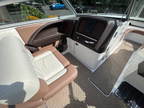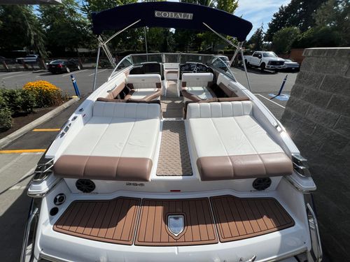 2013 Cobalt 296 with only 375 hours on twin engines, offering a perfect balance of luxury, performance, and comfort. This nearly 30-foot premium bowrider is known for its smooth ride, spacious layout, and top-tier craftsmanship. With seating for up to 14, a convertible sun lounge, enclosed head, wet bar, and extended swim platform, it's ideal for entertaining or cruising in style. The boat features high-end finishes throughout, including stainless steel accents, premium upholstery, and a quality sound system. With low hours and a reputation for reliability, this Cobalt 296 is turn-key ready for your next adventure on the water.