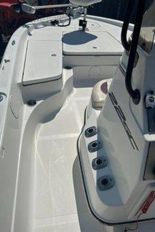 Providing all the features to complete a fisherman's dream, this Epic Sport Console includes a digitally controlled, Minn Kota trolling motor, a Talon down rigger, a massive Humminbird depth finder, and a whopping 250hp Mercury PRO XS Optimax motor equipped with an electronic jackplate. This boat also provides a bimini canvas for those hot days on the water. TRAILER INCLUDED! Basic Boat Info