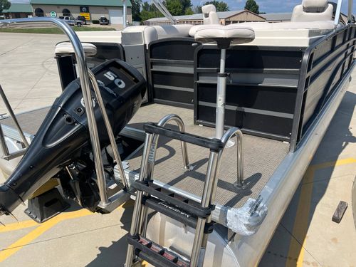 The boat is packed with a bevy of premium features that ensures your time on the waterways is comfortable, convenient and enjoyable. It includes a Bimini top which offers a respite from the scorching sun, a sturdy rear ladder that provides easy access to the water and back, and generously sized rear fishing chairs.