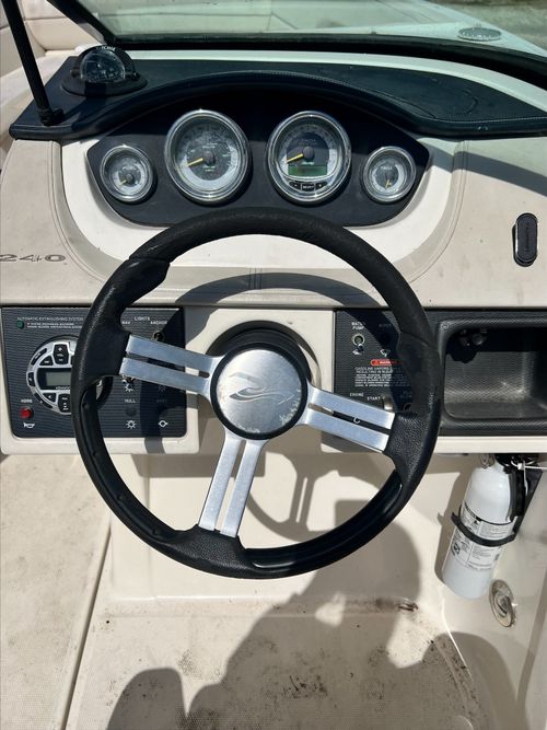 The 240 Sundeck offers a wide, open layout perfect for entertaining, sunbathing, and watersports, with plenty of seating, thoughtful storage, and smooth ride quality that Sea Ray is known for. Whether you're anchoring out for the afternoon, tubing with the kids, or cruising the shoreline, this boat delivers versatility and comfort in every outing.