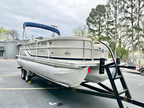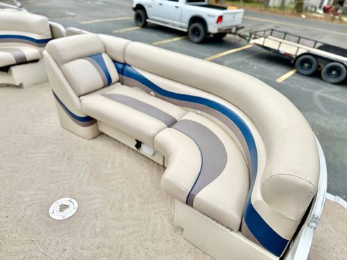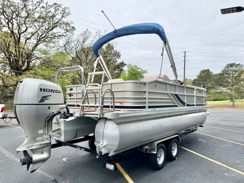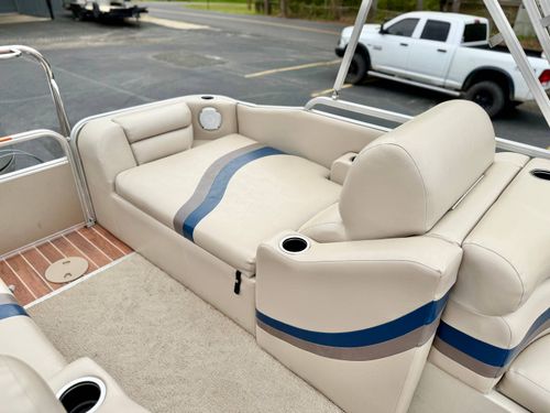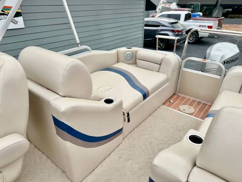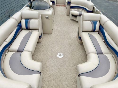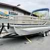 Outstanding Pre-owned Triple Pontoon Boat: Experience the luxury of smooth sailing with this impeccably maintained used triple pontoon boat, inclusive of high-end lounging facilities for you to unwind on the waves. With its sleek design, it is the perfect platform for both leisurely lake escapes and sociable gatherings.