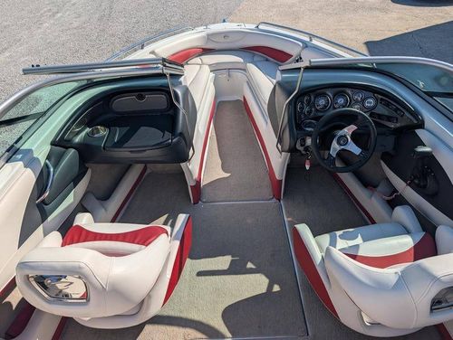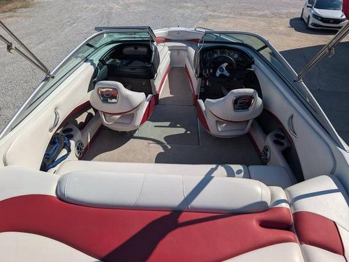 The 210 SS has a sporty silhouette and features a walk-through transom with filler cushion to create a full-length sunbed area for relaxing and catching some rays. There’s comfortable seating throughout this model including driver and passenger Gen-2 bucket seats with flip-up bolsters, rear bench seat with hidden storage, and bow seating with 16-degree lean backs, pillowtop cushioning, flip-down armrests and dual aft sun lounges.