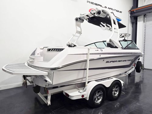 The Super Air Nautique 210 is sure to please the Nautique traditionalist while inspiring excitement at the discovery of transformations in every part of the boat. This aggressive look and feel extends below the waterline with a hull specifically designed to work in concert with the Nautique Surf System and the addition of our pro ballast package that gives you even more behind the boat than ever before.