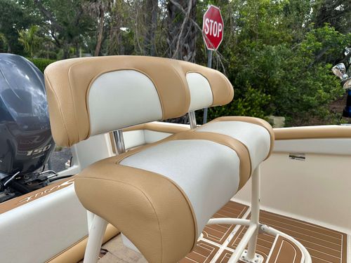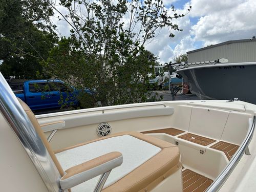 The interior has been fully refreshed, complete with new Sea Deck flooring and updated upholstery throughout. A canvas T-top provides shade and protection, while a JL Audio stereo system brings high-quality sound to every trip. The Lowrance GPS/Fishfinder makes navigation and tracking structure easy, whether you’re headed offshore or exploring the mangroves.