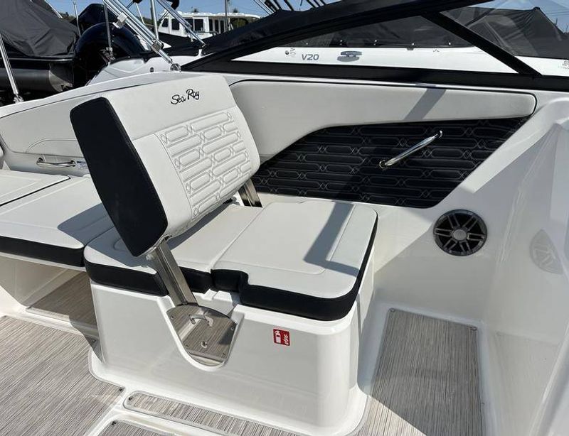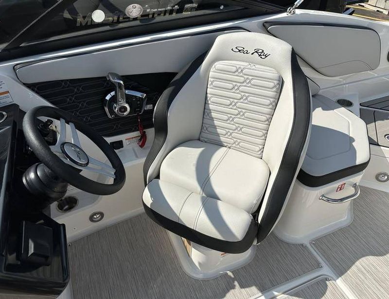 2014 Sea Ray 21 SLX, measuring 21 feet in length and powered by a reliable MerCruiser engine with just 274 engine hours. This sleek bowrider combines sporty performance with Sea Ray’s renowned craftsmanship, making it perfect for cruising, watersports, or relaxing days on the water. The 21 SLX features a stylish, ergonomic layout with comfortable seating, plenty of storage, and a premium sound system for entertainment. With responsive handling and a smooth ride, this boat is ideal for both first-time and experienced boaters looking for a fun, versatile vessel. Trailer Available