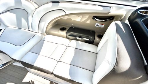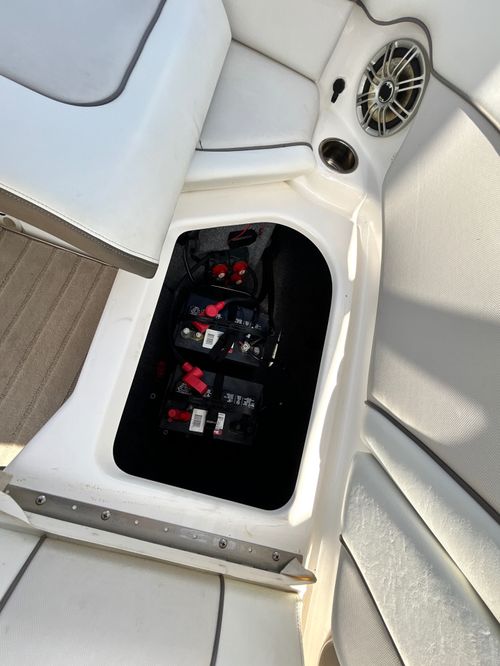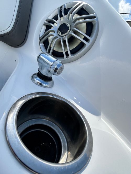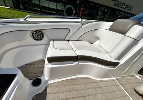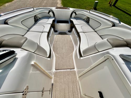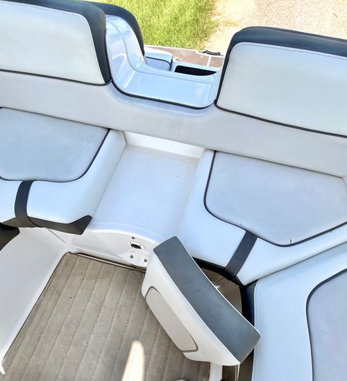 This boat comes with many fun features to make it a perfect day on the water. Bimini top, wakeboard tower, bow and back boarding ladder, freshwater shower, removable table (inside boat and back swim platform placement).