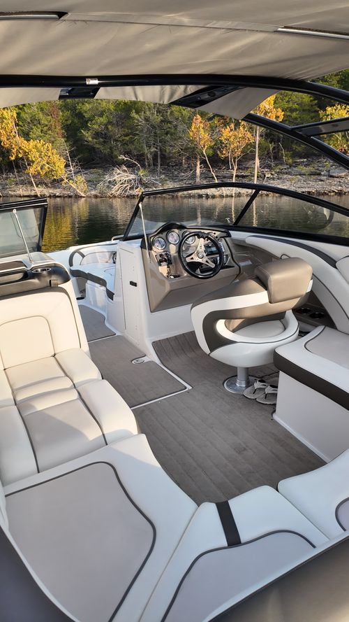 At the heart of this boat are two high-performance Yamaha engines, providing the power behind this watercraft's unbeatable performance. Ride in comfort and style, with a spacious layout that can comfortably accommodate up to ten passengers, providing an ideal setting for either relaxing cruises or exciting water sports adventures.