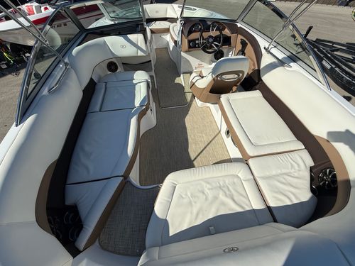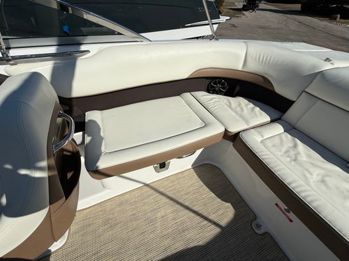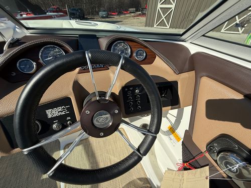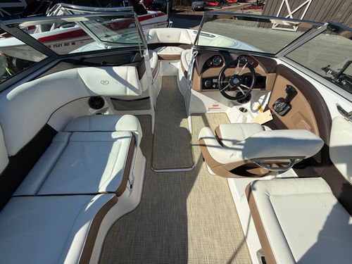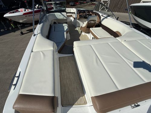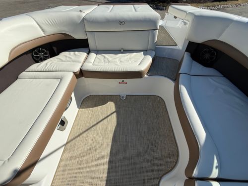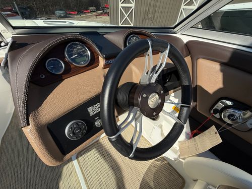 The extended swim platform creates an ideal staging area for swimmers and watersports, making it easy to get in and out of the water. At the helm, you’ll appreciate the clean dash layout, intuitive controls, and excellent sightlines that make operating the boat both simple and enjoyable.